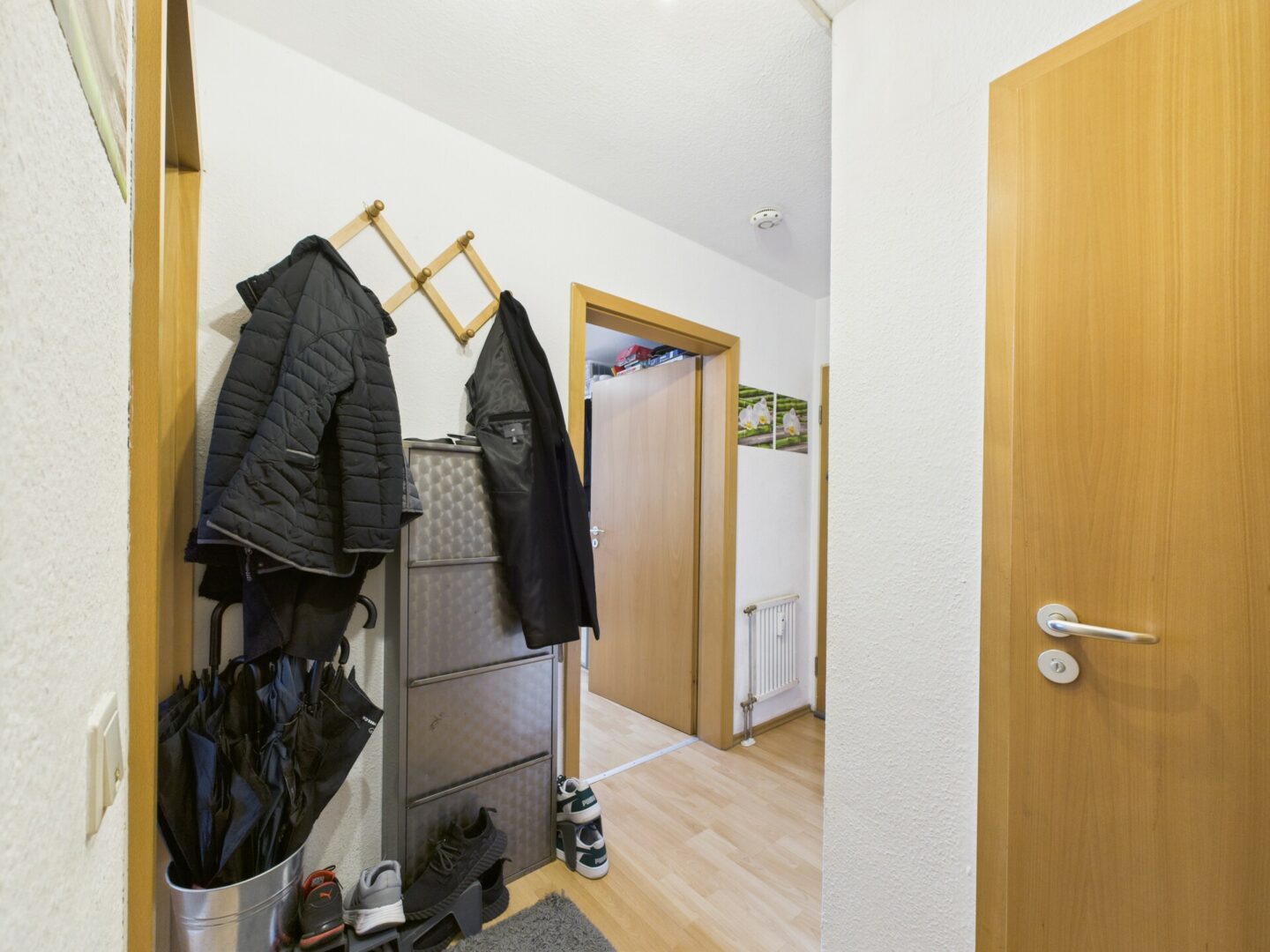 Beim Betreten der Wohnung gelangen Sie zunächst in den praktischen Hausflur, der ausreichend Platz für Garderobe und Stauraum bietet. Von hier aus sind alle Wohnräume direkt erreichbar.